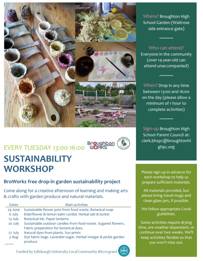 Free summer workshops – Tuesdays 1-4pm in the school garden